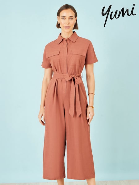Yumi Brown Polka Dot Culotte Jumpsuit