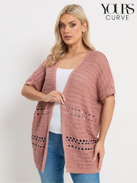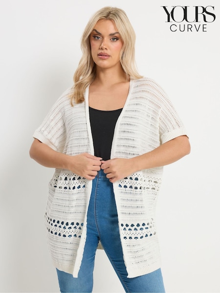 Yours Curve Cream Diamond Stitch Balloon Cardigan