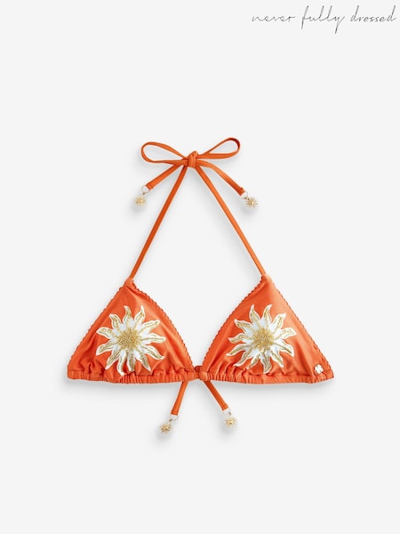 Never Fully Dressed Orange Sun Embellished Triangle Bikini Top