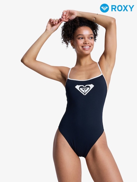 Roxy Black The Retro Essentials Square Neck Logo Swimsuit
