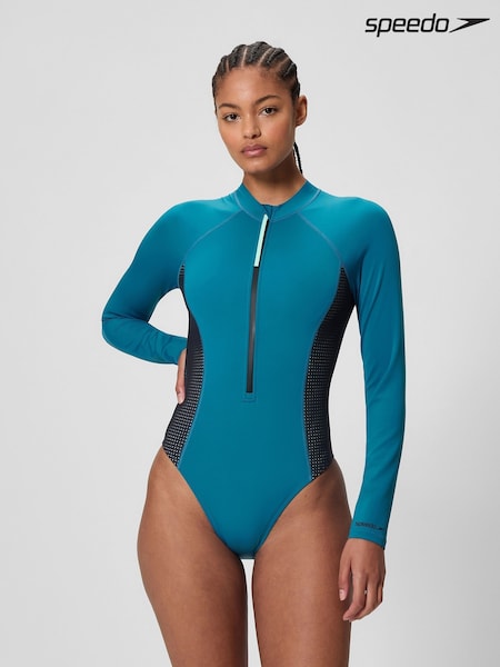 Speedo Blue Scuba Flex Long Sleeve Zip Swimsuit