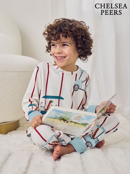 Chelsea Peers Natural Kids Cotton Stripe Print Long Pyjamas Set 1-12 Years