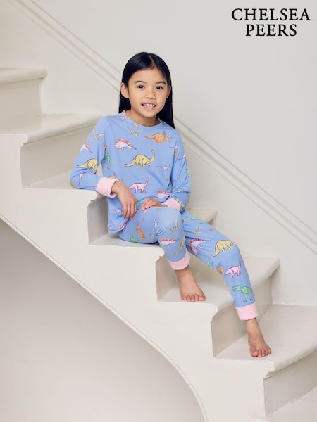 Chelsea Peers Blue Kids Dinosaur Dreams Print Long Pyjamas Set