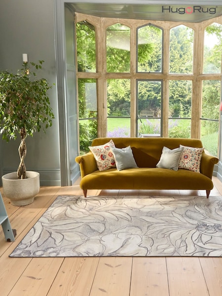 Hug Rug Natural and Grey British Made Washable Art Floral Print Rug