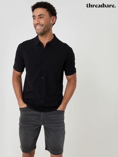 Threadbare Green Grandad Collar Linen Blend Short Sleeve Shirt
