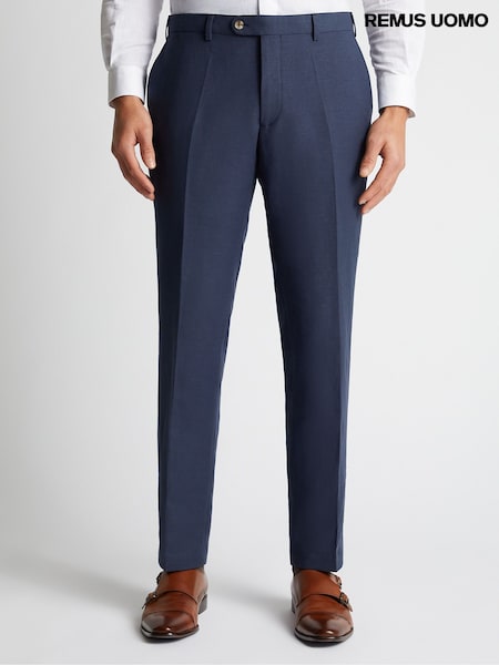 Remus Uomo Blue Peppe Tapered Fit Linen Blend Suit Trousers