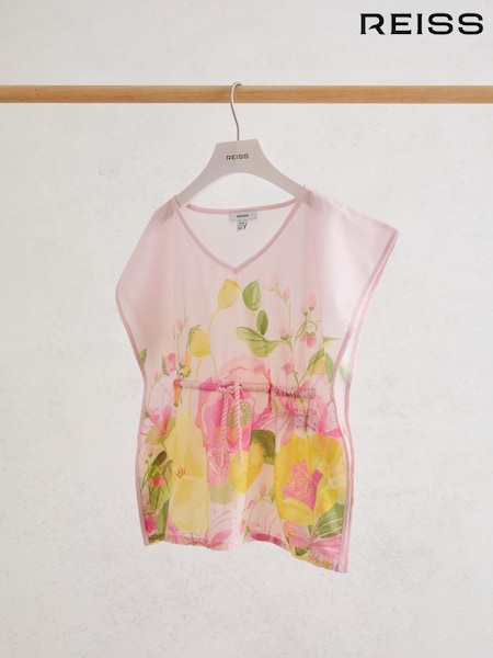 Reiss Pink Print Kila Cotton Floral-Print Kaftan