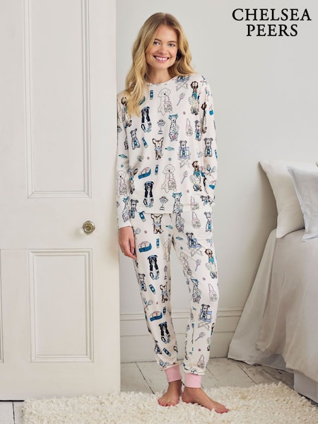 Chelsea Peers Off White Cotton Chip the Christmas Cockapoo Dog Print Long Pyjamas Set