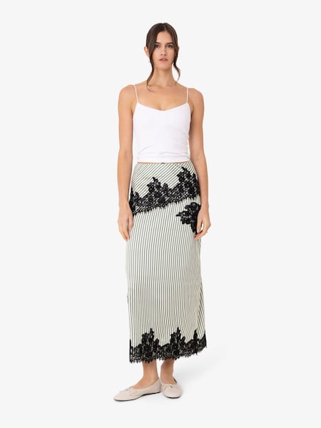Amy Lynn Green Verona Stripe Satin Lace Contrast Maxi Skirt