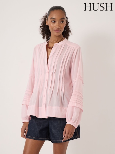 Hush Pink Fern Cotton Pintuck Detail Blouse