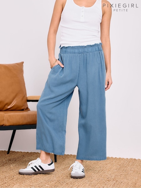 中蓝 - Yours Curve Tie Waist Cropped Trousers