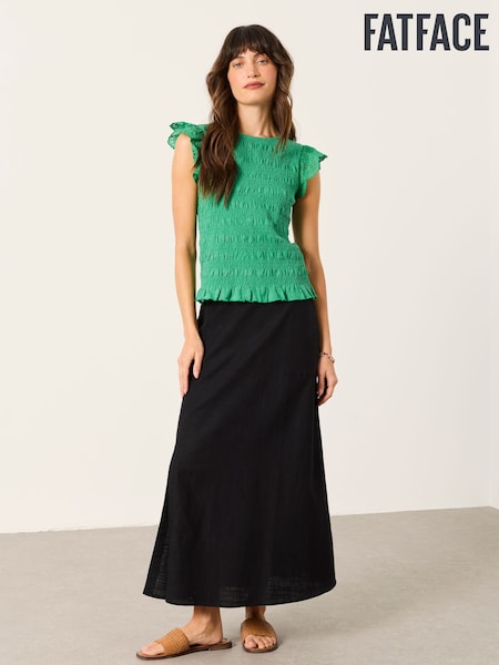 黑色 - FatFace 100% 棉质褶皱超长裙